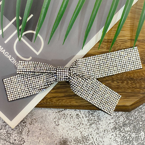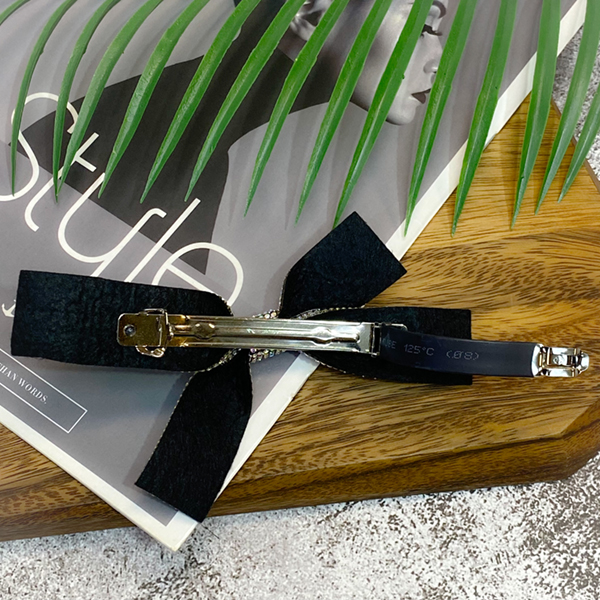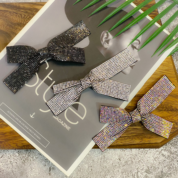 กิ๊บติดผม ทรงโบว์ เนื้อผ้ากำมะหยี่ เป็นสปริง ประดับพลอยเทียม งานแฟชั่นสวยๆ