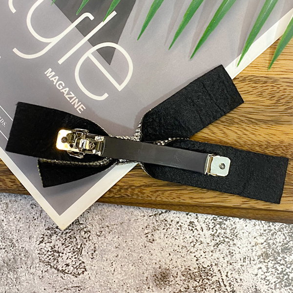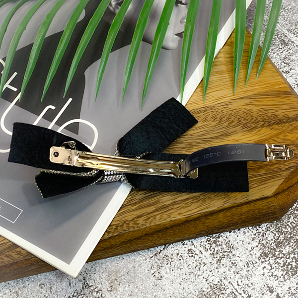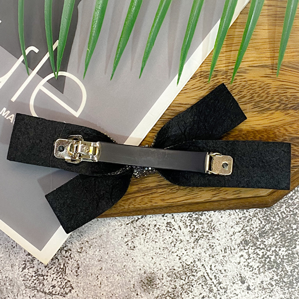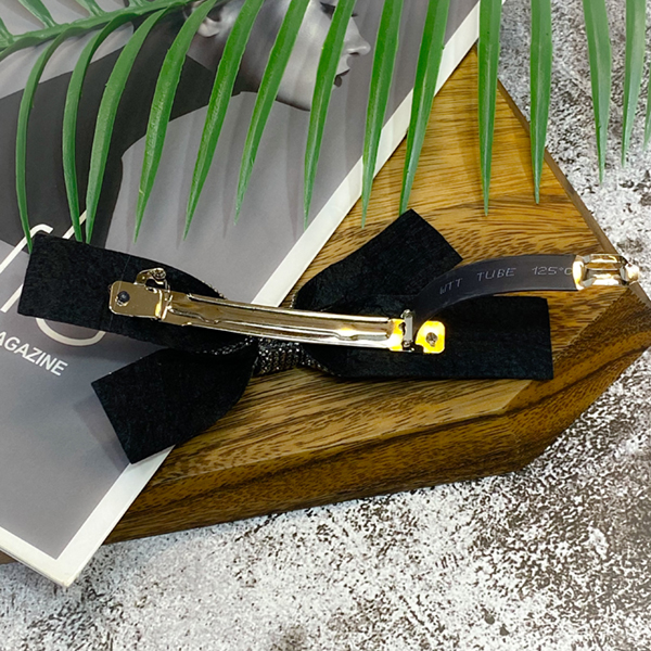 กิ๊บติดผม ทรงโบว์ เนื้อผ้ากำมะหยี่ เป็นสปริง ประดับพลอยเทียม