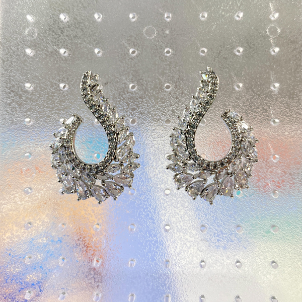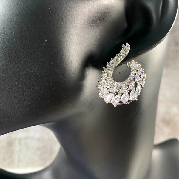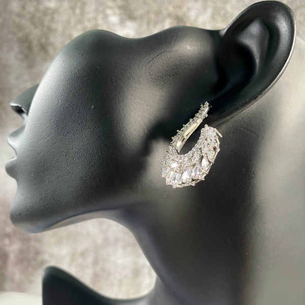 ต่างหู แบบก้านเสียบ รูปทรงดีไซน์หรู ประดับเพชรพลอยสีขาวนวล เหมาะสำหรับงานแต่งงาน งานวันเกิด งานสังสรรค์