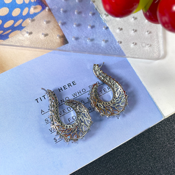 ต่างหู แบบก้านเสียบ รูปทรงดีไซน์หรู ประดับเพชรพลอยสีขาวนวล